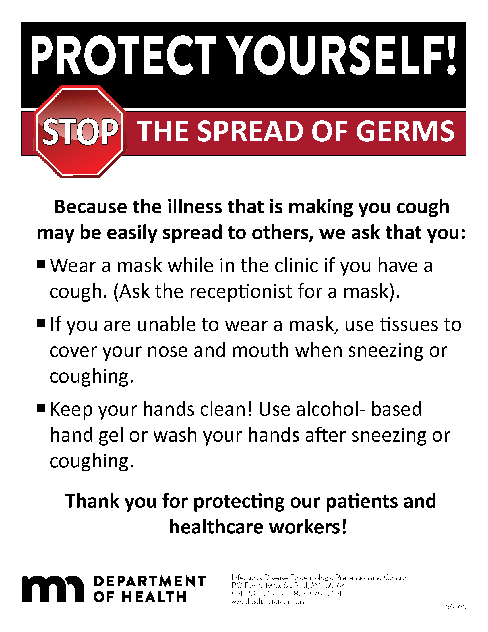 Stop the spread of germs that make you and others sick: Cover Your Cough!